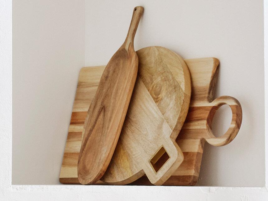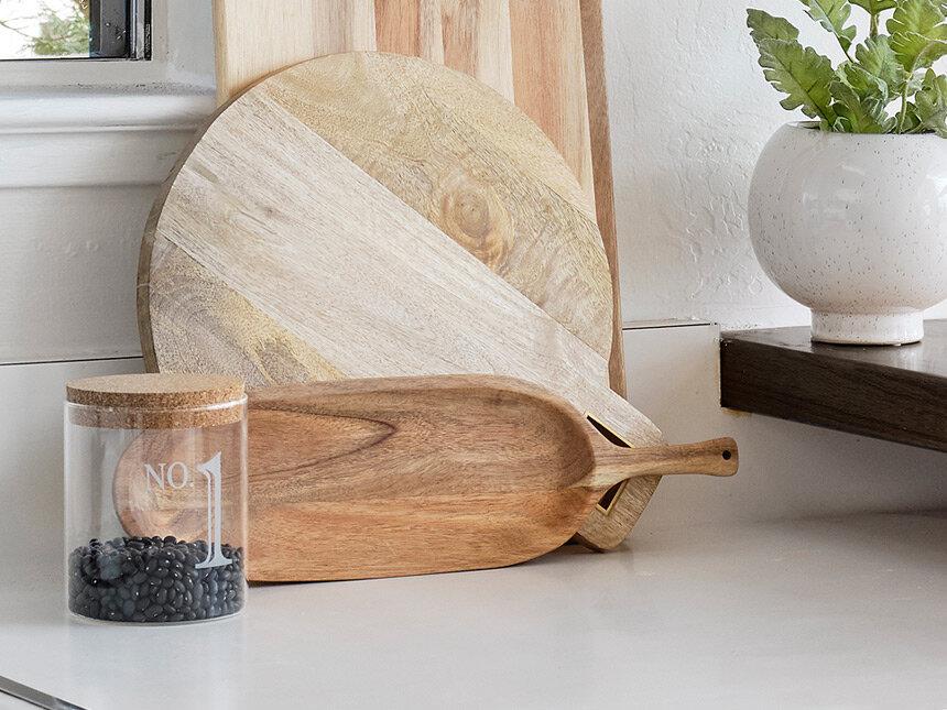 Solid Acacia wood. Perfect cutting board stack accent. Great as a serving tray.