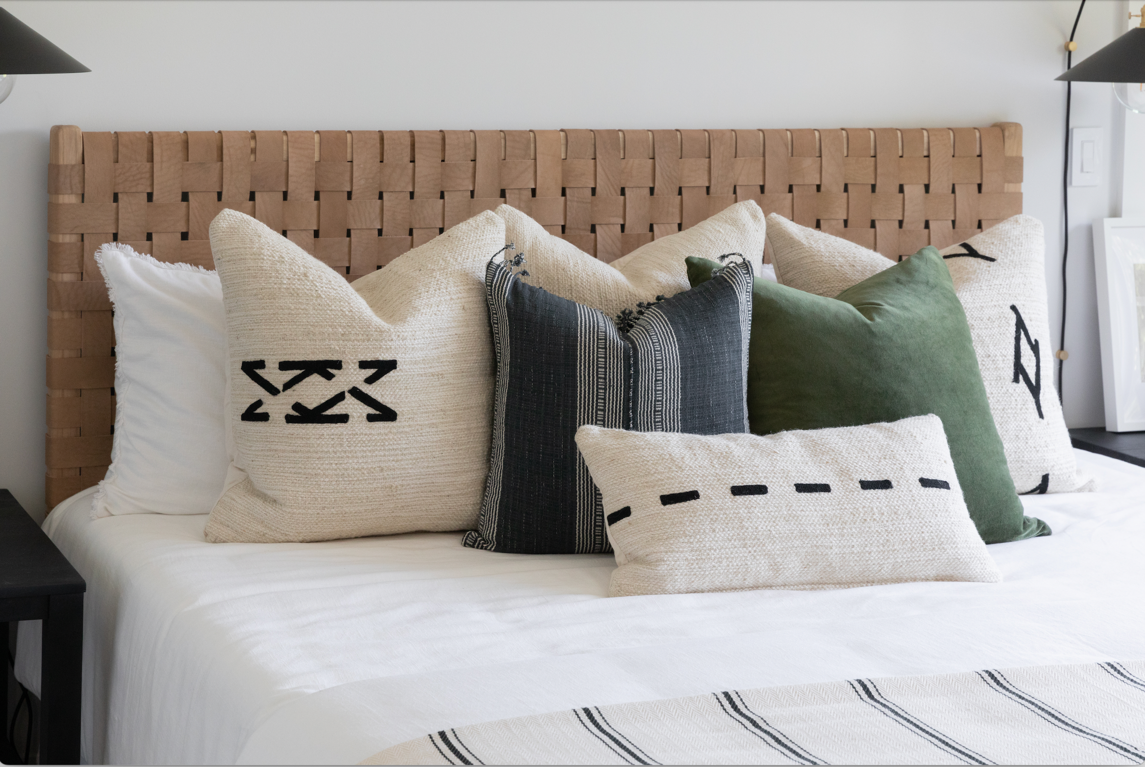 Hand-loomed in India using raw wool and premium cotton, this trio of IW-designed pillows merges style and comfort with an earthy palette and bold embroidery.