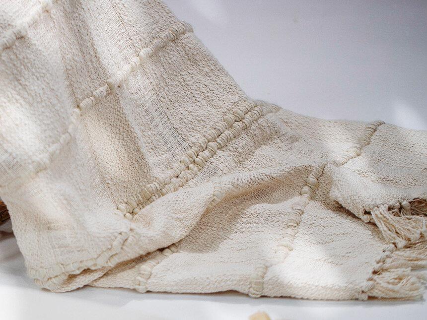 Made of smooth ivory cotton and premium chenille. Adds a classic layered look.