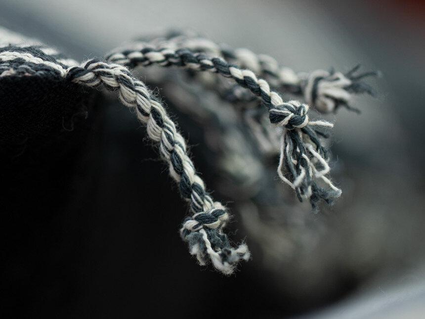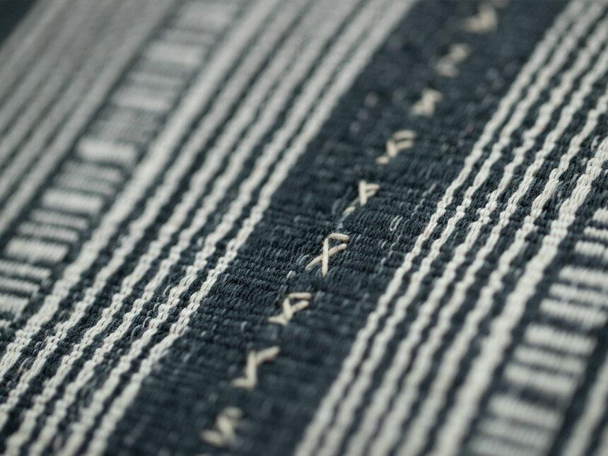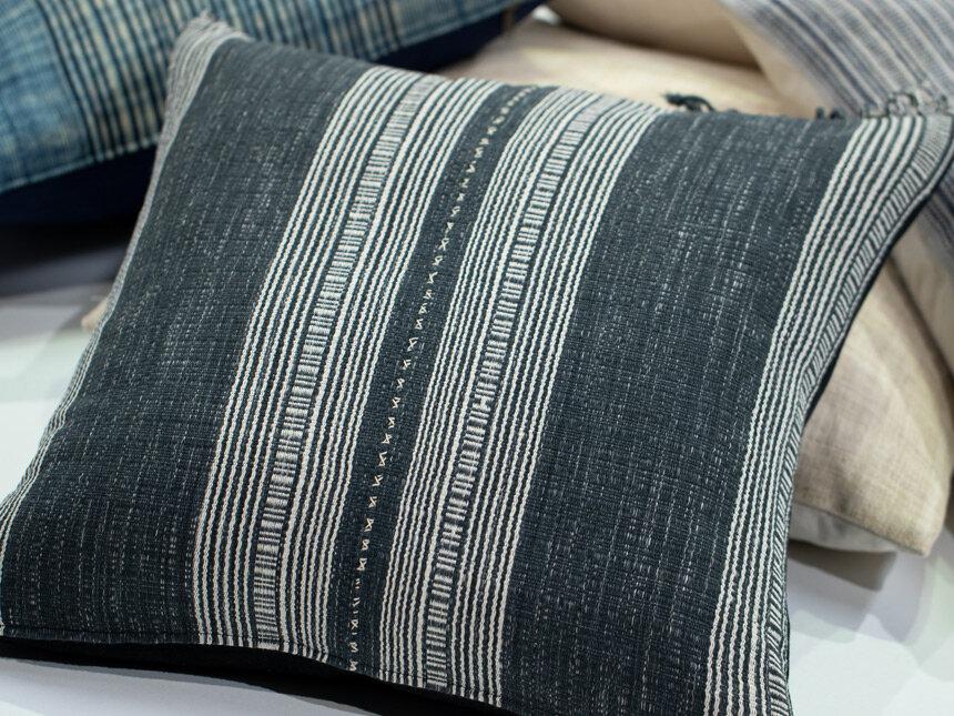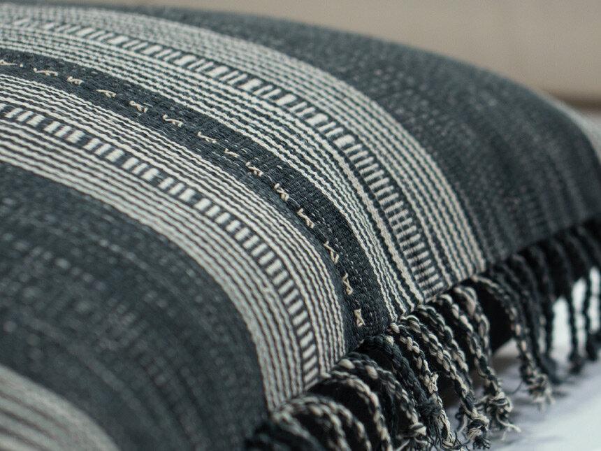 Made from traditional Chiangmai cotton textiles crafted by the Hmong Hill Tribe of Thailand. Deep, charcoal-blue.