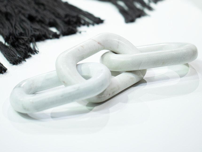 Three-link chain made of white marble styles effortlessly. Place atop a book or two, or just let it shine on its own.