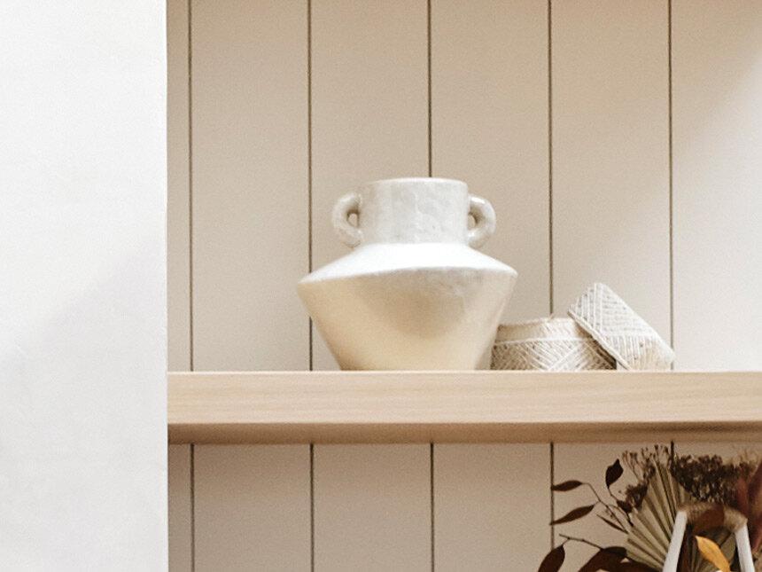 Organic in shape and texture, this stoneware vase is ideal when paired with our dried natural palms.