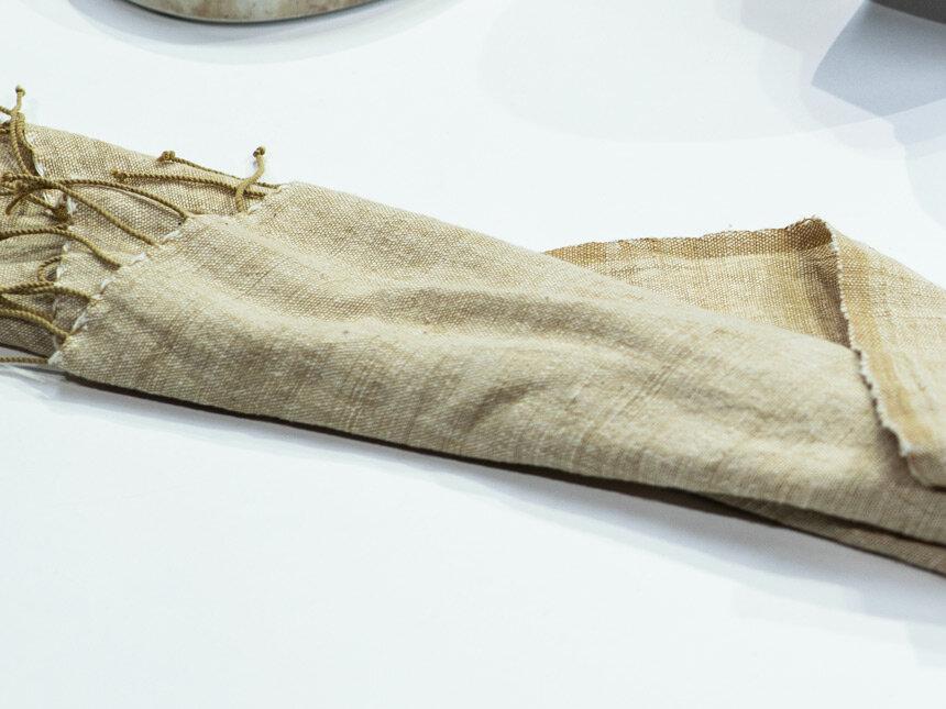 Hand-woven in Ethiopia, a dyed warp is complemented with a natural, undyed weft. Each tassel is meticulously hand-tied.