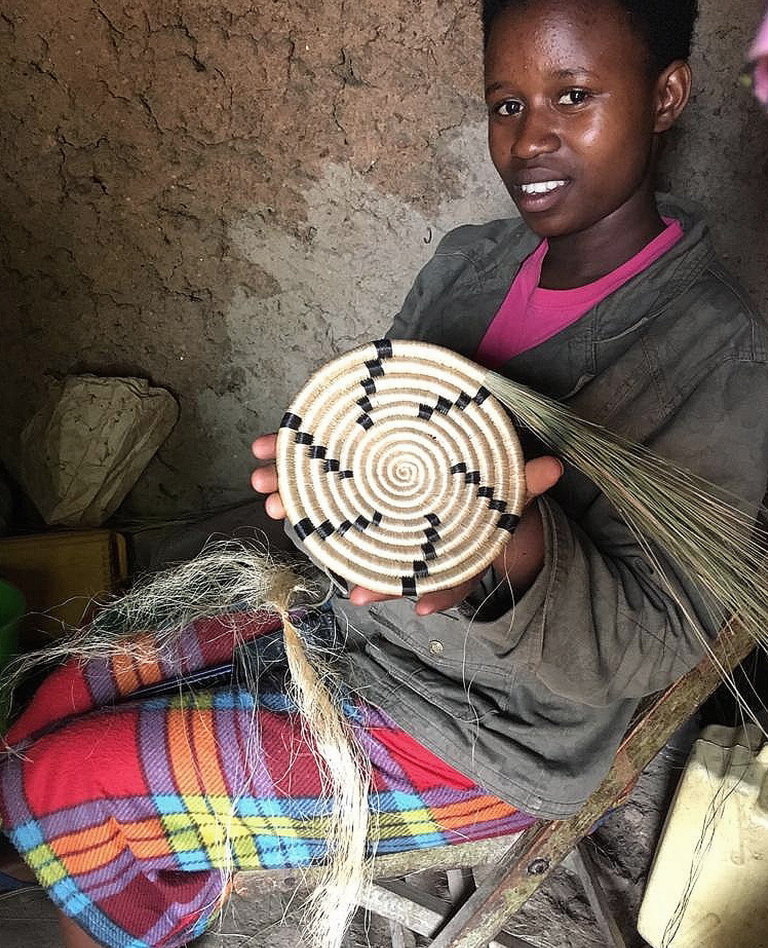 Handmade in Rwanda, baskets are woven using Sisal – a type of agave plant that produces long, hardy leaves. When stripped, strong sisal threads are created. The thread is rinsed and processed into a natural color state (or with a natural dye) and tightly coiled around bundles of sweetgrass as intricate patterns are woven in – each taking several days to complete. Baskets are traditionally gifted on special occasions as a symbol of friendship, family, and life.