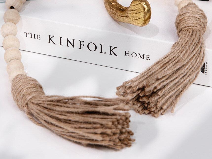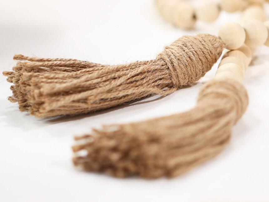 Handmade. Natural wood beads. Jute tassels. Styles effortlessly.