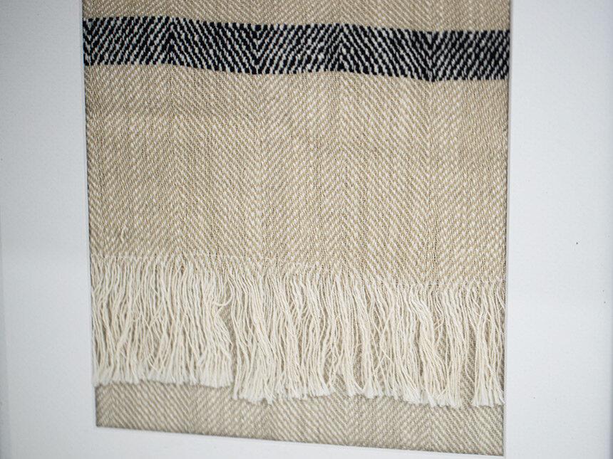 Natural cotton framed textile with relaxed fringe brings warmth to any space. Due to handmade nature, each may vary. All can hang horizontally or vertically.