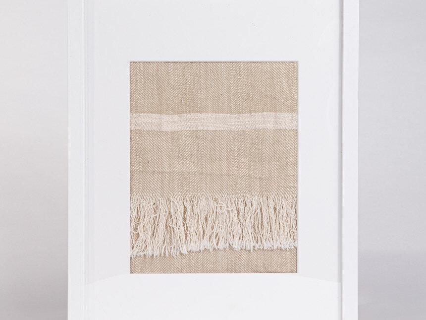 Natural cotton framed textile with relaxed fringe brings warmth to any space. Due to handmade nature, each may vary. All can hang horizontally or vertically.